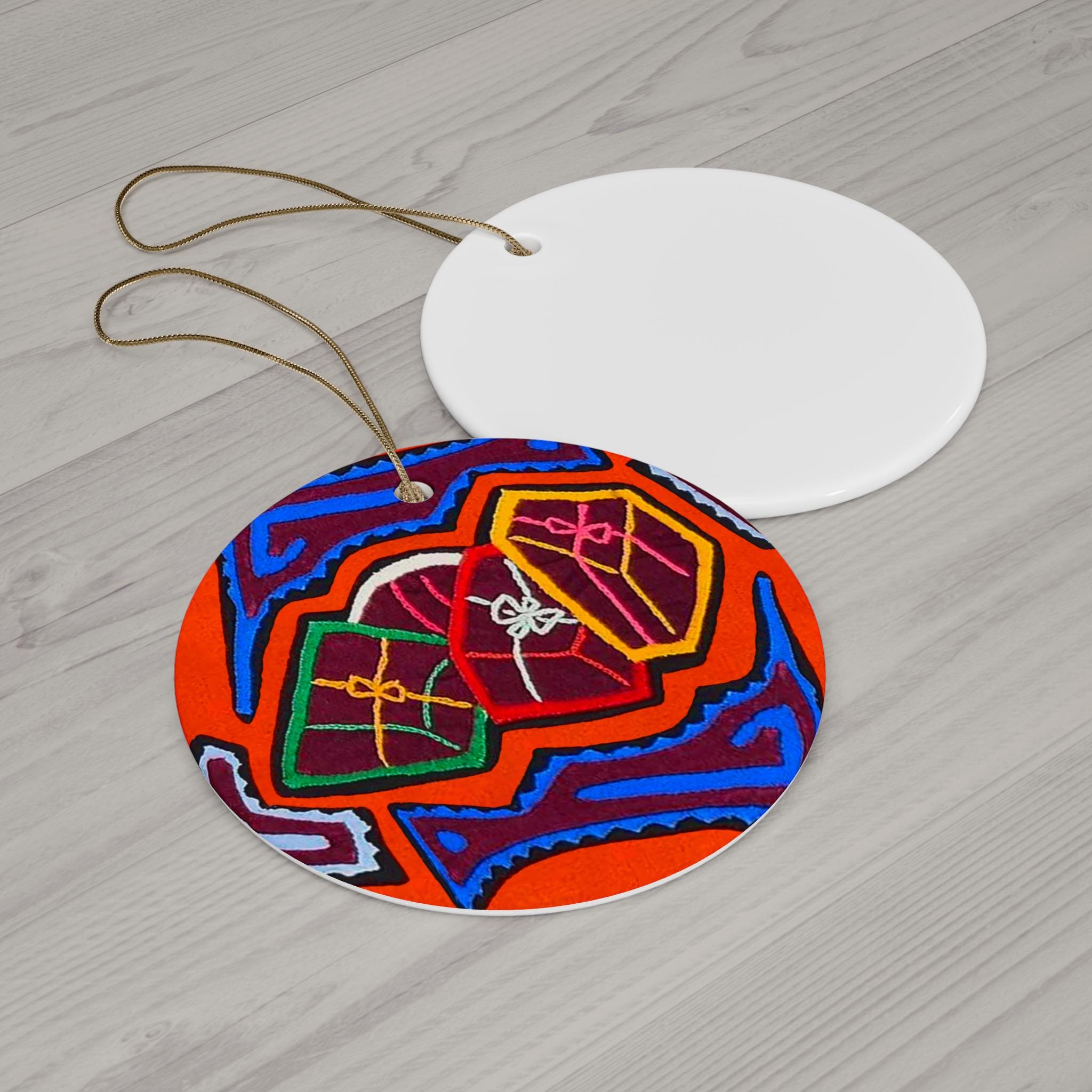 Panama mola Christmas ceramic ornament brings a touch of festive colors and unique design to your tree. Perfect for those who appreciate traditional Panamanian art and culture, this ornament is ideal for Christmas and holiday celebrations.