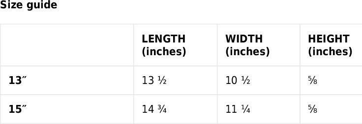 • 15″ sleeve weight: 8.8 oz (250 g)